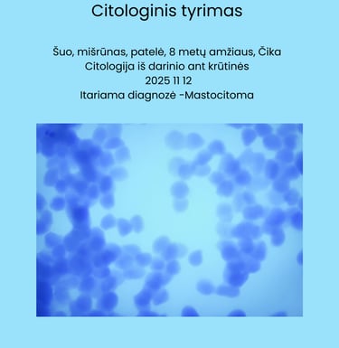 Atliekame širdies / kardiologinius, onkologijos (cPSE šunims) ir kitus tyrimus (uždegiminius parametrus, ankstyvai inkstų pažeidimų diagnostikai, diabeto diagnostika, ankstyvo nėštumo nustatymas).Tyrimai atliekami su profesionalia laboratorine įranga.