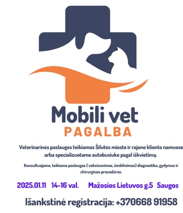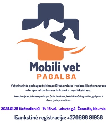 Veterinarinės paslaugos teikiamos Šilutės mieste ir rajone kliento namuose arba specializuotame autobusiuke pagal iškvietimą.